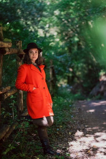 Cappotto dalla forma moderna, avvitato sui fianchi e con tasche a toppa sul davanti.