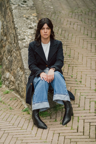 Cappotto dalla forma moderna, avvitato sui fianchi e con lo spacco dietro.